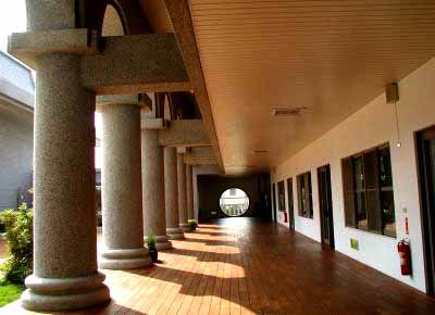 圓柱,是彰化分會裡的一大特色,右手邊的第二個門,是我們的家「文宣室」。轉身面向左手邊,是中庭。很喜歡這樣的建築,古色古香,長廊下的光影,讓人不禁想要多停留一會兒,更想要多看它幾眼!