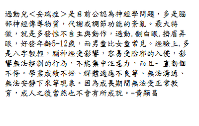 過動兒/妥瑞氏症/易經與健康生活/社區大學課程講義。