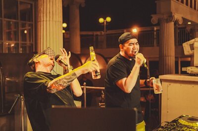 Matzka(右)驚喜上台高歌,合體DJ賴皮 MR.SKIN掀起高潮。圖/麗星郵輪、東南美娛樂提供