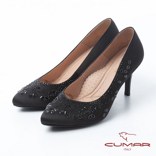 【CUMAR】CUMAR經典優雅 水鑽刺繡風尖頭高跟鞋(黑)商品訊息描述: