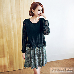 OB嚴選1121新品 浪漫風情~假兩件緹花拼接印花下襬長版上衣2色』