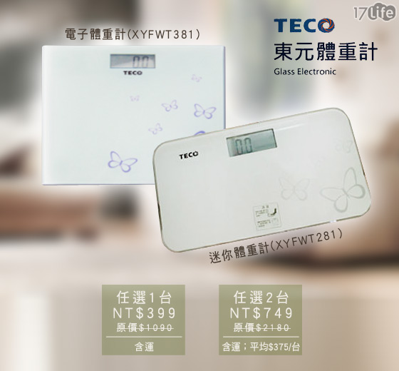 商品訊息簡述: 宅配:平均每台最低只要375元起(含運)即可購得【TECO東元】體重計系列1台/2台,款式:迷你體重計(XYFWT281)/電子體重計(XYFWT381)。