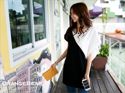 OB嚴選 時尚風情~斜半邊撞色亮鑽裝飾不對稱袖長版上衣OB嚴選 商品網址: http://www.obdesign.com.tw/product.aspx?seriesID=DA915-&no=274...