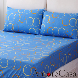 網友最喜愛購買的商品【AmoreCasa】雅漾。加大三件式精梳棉床包組(藍)