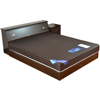 內容:床頭箱密集板、床頭櫃密集板、床底木心板/夾板、床墊高碳鋼聯結式彈簧/防潮不織布/高密度泡棉/高級緹花布
