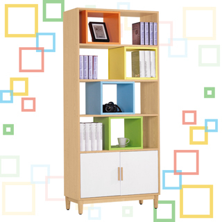 【東京家居】艾俊繽紛2.7尺栓木本色彩格書櫃