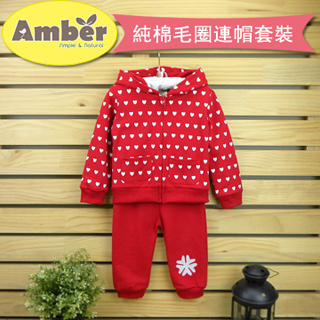 開箱文媽媽愛寶寶【喬治亞花園】Amber 滿版愛心兩件套長袖外套 長褲(赭紅套裝)