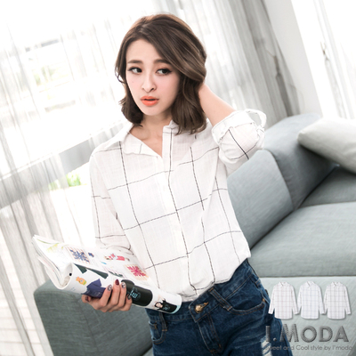 ob嚴選 夏天顯瘦穿著分享0318新品 俐落型女~嚴選方格紋寬版反折袖長版襯衫.3色 微卡蒟蒻米