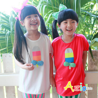 【Azio Kids美國派】三色冰棒蝴蝶結別針縮口T(白) 館長推薦 評價好品排名 價格更是平民 人氣口碑推薦現貨供應中 網路熱
