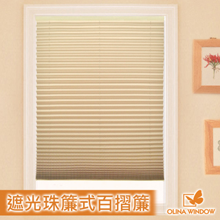 【歐麗娜窗飾】優雅律動遮光珠簾式百摺簾 淺金星光(135cm x 160cm)