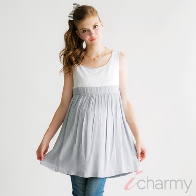 【icharmy愛俏咪】拼接燙金滾邊打摺感背心洋裝(SS1004)