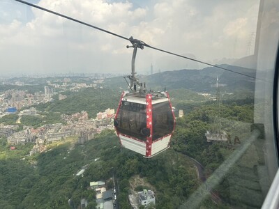貓空纜車全長4.03公里,是臺北市內的第一條纜車系統,單程一趟大約20到30分鐘,分別設動物園站、動物園南站、指南宮站、貓空站四個站讓乘客上下車,和山友如劉姥姥進大觀園,啥都有趣。據稱說搭纜車最美的三個時刻,分別是雨後的雲霧飄渺、黃昏的晚霞和燦爛的都市夜景,果真纜車隨著山勢起伏前進,眺望捷運列車、景美溪畔、臺北101和長頸鹿焚化爐,接景山勢讓人驚艷,經過2號站轉彎後視野大開,可以俯瞰車潮川流不息的高速公路,過了指南宮站,V型大陡坡,視野更是開闊,山下屋瓦房舍一覽無遺,天高氣爽美景當前,讓人耳目一新。
