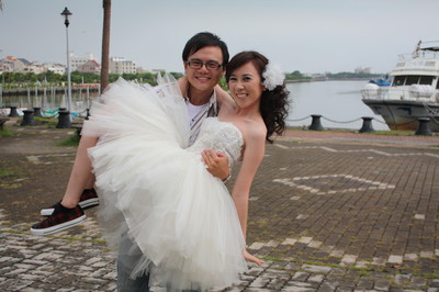 昨晚去挑完所有關於婚紗照系列物品了...幸好之前有先殺去拍完婚紗~不然現在颱風一個接一個來..真的會暈倒ㄟ這是拍婚紗當天表妹幫忙側拍的紀錄照片我的有心人第一次在這裡曝光啦~~他很辛苦 為了我每每從桃園...