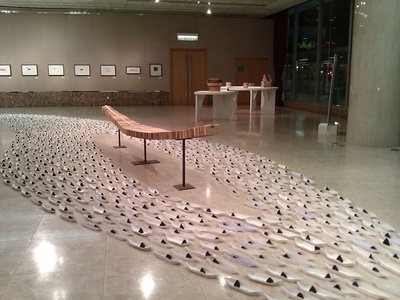 路過荃灣大會堂,隔著落地玻璃,見一大型藝術裝置,甚吸引,於是走進展廳察看。 原來是雕塑家沈寬先生的個人展...
