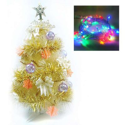 【聖誕裝飾品特賣】台灣製2尺60cm特級金色松針葉聖誕樹(彩金色配件+LED50燈彩色燈串 插電式透明線)比較