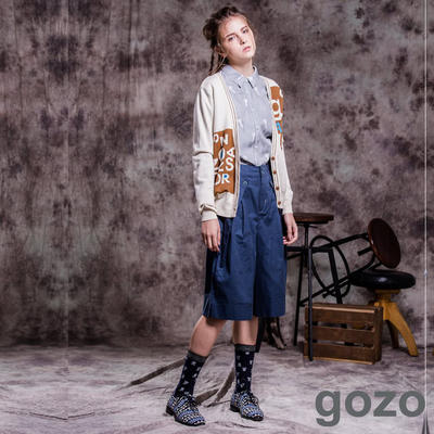 【gozo】推薦 立體壓褶剪裁造型剪刀刺繡寬口褲(二色)限時極品
