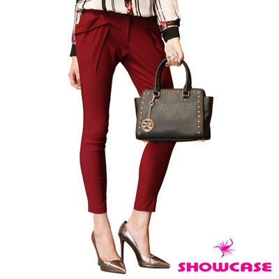 【SHOWCASE】推薦 側寬口袋打褶酒紅色彈性長褲分享