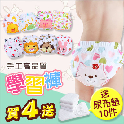 【4件入+可洗式尿墊10片】推薦 寶寶可調扣式防漏抗菌透氣超柔學習褲成本價