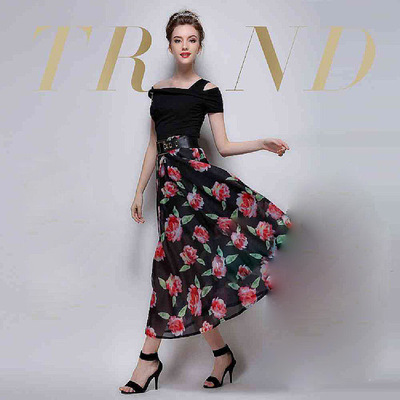 鄉民一致推薦都說【EOWYN】時尚氣質花朵半身裙蓬蓬裙長裙黑色-藍色-L-M-S-XL(黑色XL現貨),值得使用的啦!
