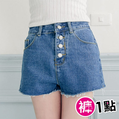 鄉民一致推薦都說【褲1點】E034 時髦定番-排釦抽鬚牛仔短褲(淺藍),值得使用的啦!