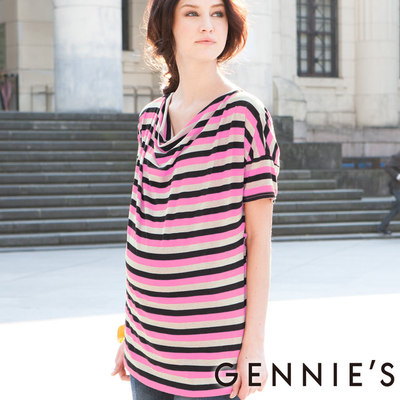 但是雪兒說買東西前要多比較,叫我google一下【Gennies奇妮】春漾粉嫩條紋春夏孕婦上衣(C3110)。