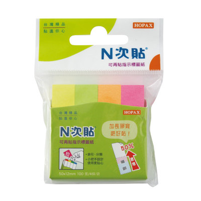 最夯! 超怕缺貨的【N次貼】4色螢光指示標籤紙61423-50×12mm-100張-4條-袋(標籤)哪裡有貨?