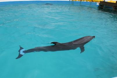 後來專家們為她研製出一套義鰭,裝上後,Fuji能再擺動身體,顛簸游動,甚至嘗試躍出水面,卻因技術問題,不但常失平衡,甚至折斷了多副義鰭,又割傷皮膚,叫海洋博公園人員心痛不已。