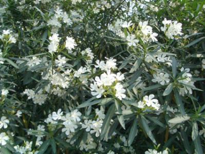 最近路過湖邊,常常都會看到不知名的小花,大部分是白色的,有些是桃紅色的,一大片一大片。那天又經過湖邊,有人跟我說這種小花原來是「夾竹桃」。耶,是唷,我聽過夾竹桃,但是印象中好像沒有見過夾竹桃。但是跟我說這是夾竹桃的那位大人,先前也曾經跟我說錯過植物的名稱,所以我無法考究這到底是不是夾竹桃。