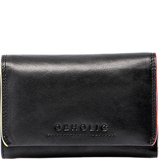 推薦momo熱銷商品【OBHOLIC】Original 義大利環保牛皮革 雙色油邊 中夾(#13WW002 黑色)