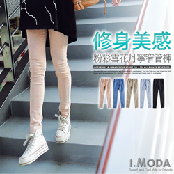 OB嚴選0823新品 修身美感~夢幻粉嫩色彩雪花丹寧窄管褲5色』