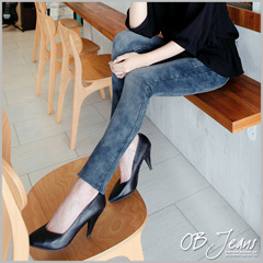 OB嚴選0904新品 冷艷時尚~復古調洗色刷紋彈性直筒嚴選韓版牛仔褲』