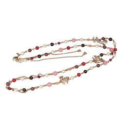 CHANEL 經典小香雙C LOGO墜飾X紅色系寶石長項鍊(金)