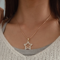 【ZARATA】韓國時尚水鑽星星造型玫瑰金項鍊