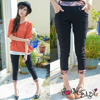 【YOUNGBABY中大碼】彩漾鬆緊腰頭口袋窄管七分褲(32/35/38)商品訊息描述:
