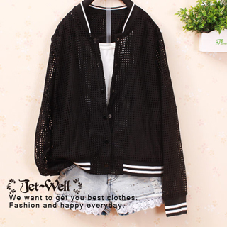 momo,momo購物台,momo購物網>【JET-WELL】日系運動風背斑駁蔥數字網狀短外套(S/M)
