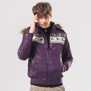 【Bes Carol】男式前胸拼毛織片棉服外套(水晶紫)商品訊息描述: