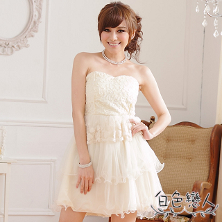 【白色戀人中大尺碼】白色復古修身顯瘦平口蛋糕小禮服商品訊息描述: