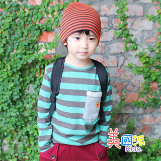 【Azio Kids美國派】毛毛逗點口袋條紋T(綠)商品訊息描述: