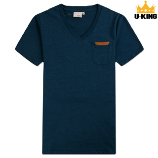 【U-KING】V領素面皮牌時尚極簡韓T(2760351)
