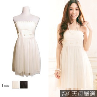 【天母嚴選】優雅珍珠點綴網紗小禮服(共二色)那裡買