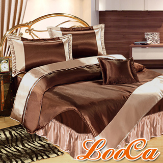 momo購物台,momo購物網:【LooCa】富貴亮緞六件式床罩組(雙人-咖)