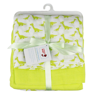 【美國FONDANT BABY】嬰兒多功能muslin純紗棉包巾(綠色小恐龍)