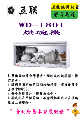 前幾天在逛街的時候看到【五聯】WD-1801(懸掛式烘碗機80CM) 覺得很心動而且正打算買【五聯】WD-1801(懸掛式烘碗機80CM)
