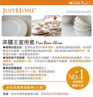 【Just Home】金色玫瑰高級骨瓷飯碗5入組哪裡買最便宜.心得文.試用文.分享文行李箱/旅遊用品分享推薦.好用.推薦.評價.熱銷.開箱文.優缺點比較