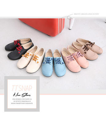 超可愛圓潤的楦頭,透過撞色及粉嫩色的繫鞋帶設計,