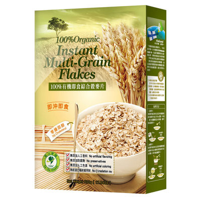 有機即食綜合穀麥片,富含膳食纖維並已蒸熟,可直接沖泡食用。
