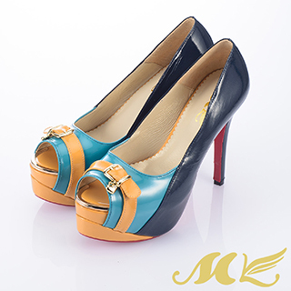 momo,momo購物台,momo購物網>【MK】金屬愛心撞色露趾防水臺高跟鞋(深藍)