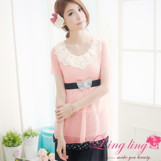momo,momo購物台,momo購物網>【lingling】花領網狀短洋裝+送腰帶PA984(清甜粉)