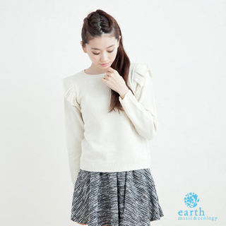 【earth music】荷葉肩設計針織上衣-象牙色(14134CB1240100106)