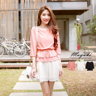 momo,momo購物台,momo購物網>【MAYUKI】純色抽繩雪紡小裙襬上衣-S.M